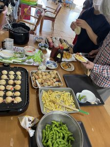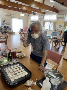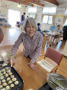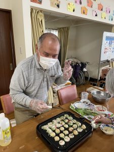 利用者様ご要望のたこ焼きをご自身で焼いて頂きました〜