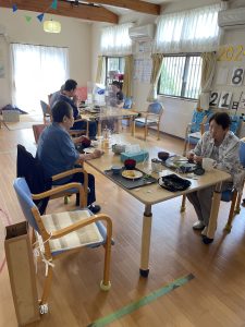 暑さで食欲が落ちている利用者様でもお寿司は別腹しっかり食べていただけたようです😊
